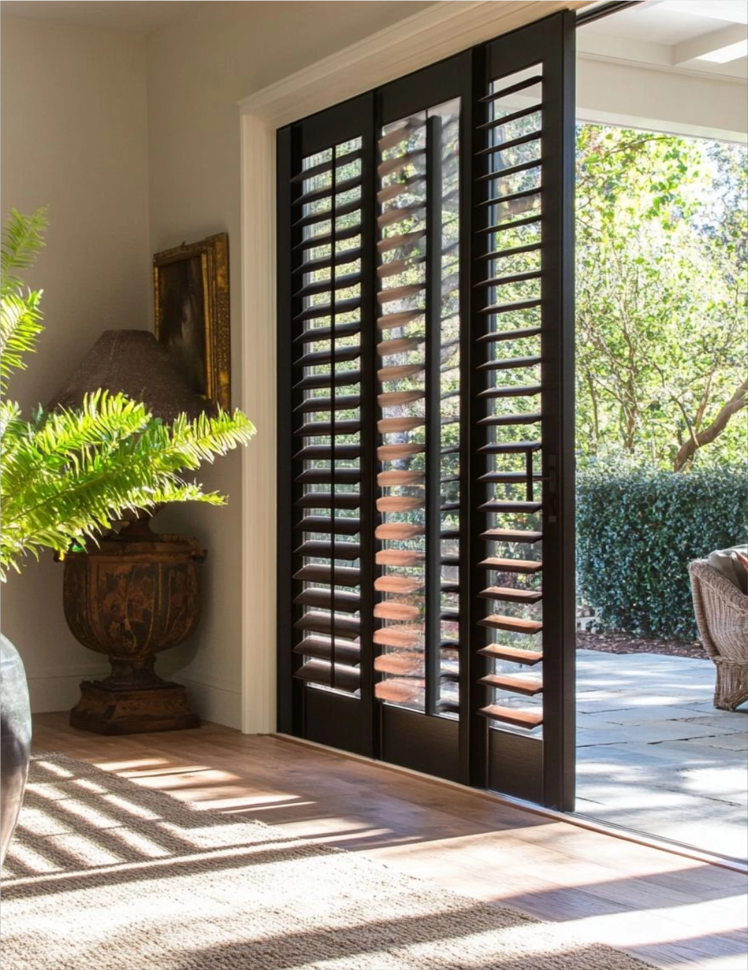 Easy-adjustable louvers let in just the right amount of light while maintaining privacy.